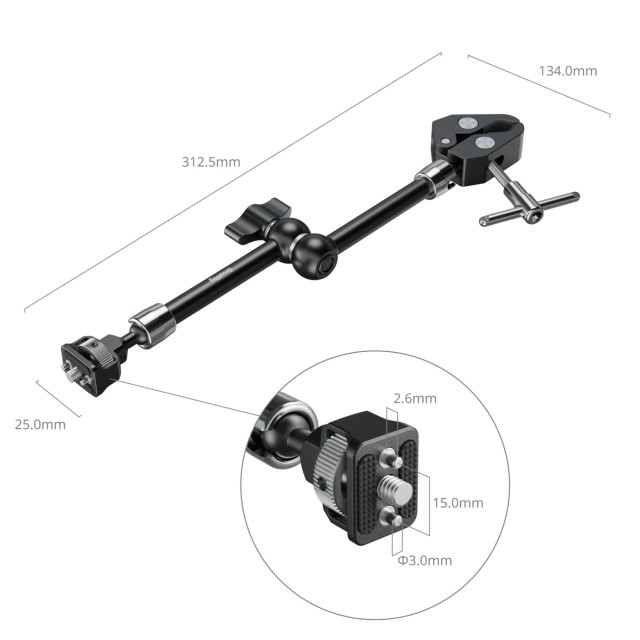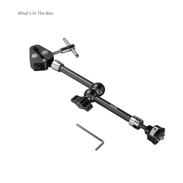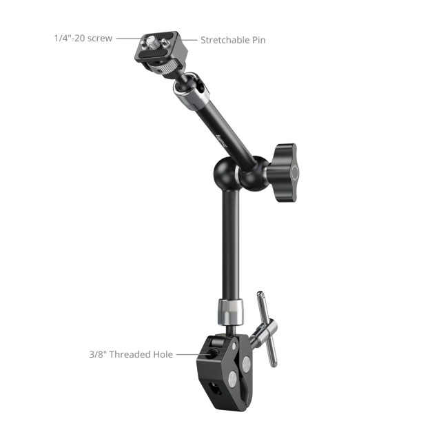 SmallRig Magic Arm rák alakú bilinccsel (11") 5311 egy magic karból és egy rák alakú bilincsből áll. Az egyik végén 1/4"-20-as csavar és visszahúzható csapok találhatók, amelyek a könnyű, szerszámmentes rögzítéshez egy bütykös hüvelykujjas csavarral vannak ellátva, valamint egy további rögzítőfurattal a mellékelt imbuszkulccsal történő meghúzáshoz.