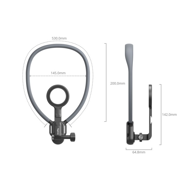 ASmallRig MagSafe-kompatibilis 5127-es nyakrögzítőt szakértő módon tervezték a mobiltelefonokkal történő POV-felvételekhez. Lehetővé teszi az egyérintéses gyors viselést egy feloldó gombbal a könnyed használat érdekében. A nyakpánt teljes hossza 600 mm (23,6 hüvelyk), és áramvonalas kialakítással büszkélkedhet a kényelmes illeszkedés érdekében.