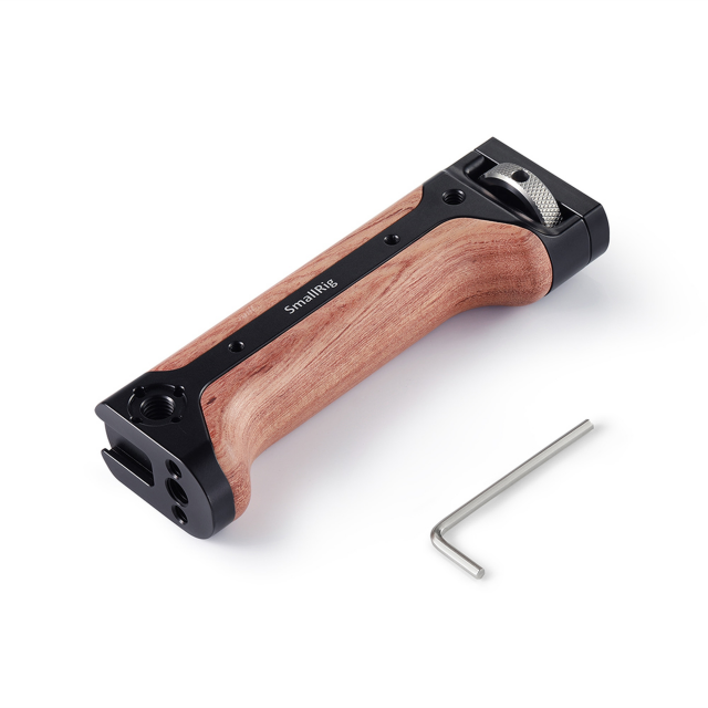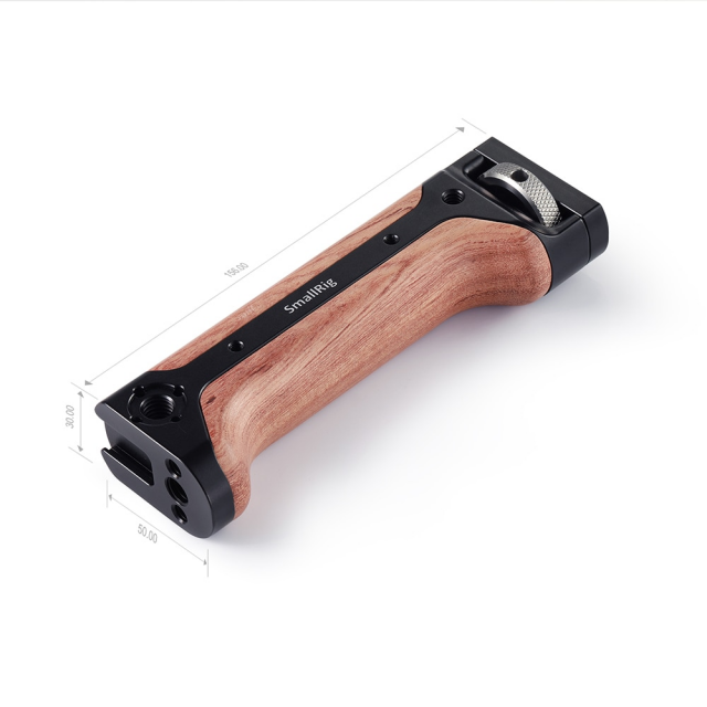 Univerzális markolatként is használható bármelyik kézi stabilizátorhoz vagy DSLR fényképezőgéphez, amelyek alján 1/4"-20-as menetes furatok találhatók. A monitor és a mikrofon számára 1/4"-20, 3/8"-16 és ARRI rögzítőfuratok vannak a tetején és az oldalán. A markolat tetején vakupapucs található, amely lehetővé teszi egy mikrofon vagy a SmallHD monitortartó kar közvetlen rögzítését. A gyorskioldós rendszerű markolat könnyen felszerelhető a pillangócsavar segítségével. Az ergonomikus, fából készült markolat könnyű és kényelmesen használható.