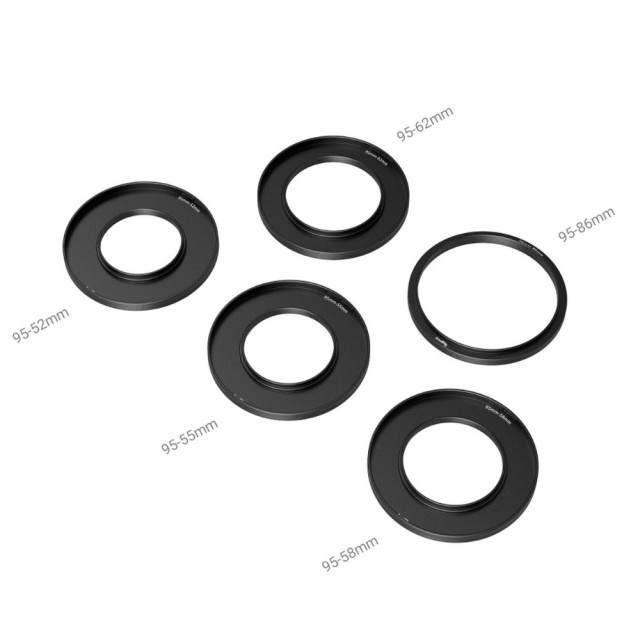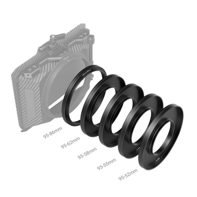 A SmallRig adaptergyűrű-készlet (Φ52/Φ55/Φ58/Φ62/Φ86-Φ95) 3383 egy opcionális tartozék, amely a 3196-os Mini Matte Boxhoz használható. Adaptergyűrűi gyorsan csatlakoztathatók a szabványos Φ52/Φ55/Φ58/Φ62/Φ86 objektívekhez, és szilárd támasztékként szolgálnak a matt dobozhoz. Az adaptergyűrűk igazítják a kialakítást a kiesés ellen, megakadályozzák a véletlen leválást, és biztonságos és megbízható fotózást biztosítanak a Mini Matte Box 3196-tal való munka során. Kompatibilisek a kerek szűrők széles skálájával, beleértve a CPL és ND szűrőket Φ92,5 mm-ig, és bőven hagynak helyet a CPL szűrőgyűrűk gyors eltávolításához és beállításához. A készlet teljes mértékben kompatibilis a különböző objektívekkel, és a gyors telepítés és a jelenetváltás tekintetében kiváló fényképezési élményt nyújt a felhasználóknak.