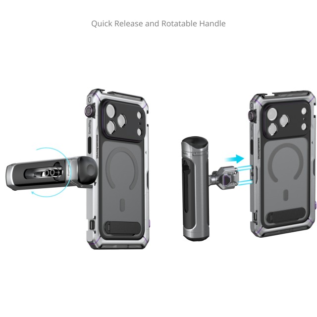 A telefon tokjával együtt is felszerelhető a keretre. A keret több 1/4"-20 csavaros, csavarodásgátló furattal és hideg cipőfoglalattal rendelkezik, így kiegészítőkkel, például fogantyúkkal, állványokkal, mikrofonokkal és lámpákkal bővíthető. A klasszikus gyorskioldó interfészek hatékony kézi vagy állványos beállításokat tesznek lehetővé.