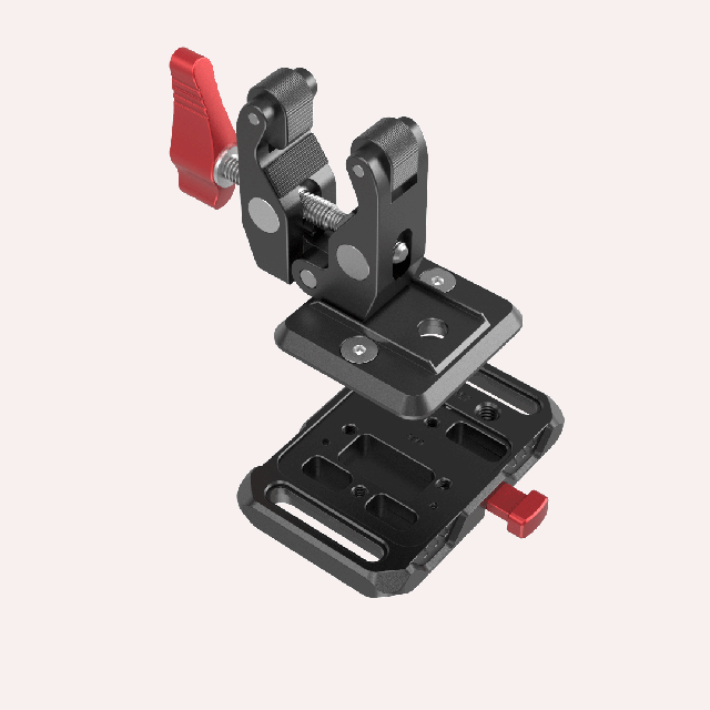 A SmallRig Mini V Mount akkumulátorlemez rák alakú bilinccsel 2989 szabványos V rögzítéssel a legtöbb V rögzítésű akkumulátorhoz illeszkedik, hogy több akkumulátor élettartamot biztosítson a kamera felszereléséhez az akkumulátor tápcsatlakozó(k) segítségével. Egy rák alakú bilincset tartalmaz, amely 15-30 mm átmérőjű rudakhoz illeszkedik, hogy segítsen a V-mount akkumulátorának állványra, fényállványra vagy kardánhoz való kézi gyűrűre való rögzítésében. Maga a lemez két 1/4-20" süllyesztett furattal, két 1/4-20" menetes furattal és négy M4-es menetes furattal rendelkezik, amelyek segítségével kétrudas bilincs, varázskar vagy egyéb tartozékok rögzíthetők a V-mount akkumulátornak a kamera felszereléséhez. A miniatűr forma könnyebbé és hordozhatóbbá teszi.
