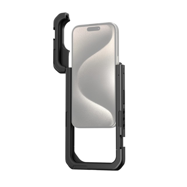 A SmallRig Mobile Video Cage for iPhone 15 Pro 4396B egy többfunkciós mobiltelefon-ketrec, amelyet kifejezetten iPhone 15 Pro készülékhez terveztek, hogy kiváló minőségű videofelvételt, élő közvetítést és vlog-felvételt valósítson meg. A kompakt és formabontó ketrec súlya mindössze 106 g. Rendelkezik 1/4"-20-as menetes furatokkal és hideg cipőkkel a fogantyú, állvány, mikrofon, LED-videólámpa stb. rögzítéséhez, ami a vadonatúj Quick Release ökoszisztémával egyszerűbbé és gyorsabbá válik. A ketrec mindkét oldalán 2 mm-nél kisebb átmérőjű hevederfuratok találhatók a hevederek számára. A ketrec lehetővé teszi egy M-bajonettes objektív vagy a hátlap cseréjével egy 17mm / 37mm menetes objektív, Moment T-sorozatú objektív rögzítését. Finoman kivájt, hogy teljes hozzáférést biztosítson az összes gombhoz, porthoz, a radar ultraszéles látószögű objektívhez és a MagSafe vezeték nélküli töltőhöz. A könnyen használható gyorszár és kioldó kialakítás biztonságosabb és stabilabb, megakadályozza a véletlen feloldást a rossz érintés miatt. A teljesen fémből készült teljes ketrec beépített párnákkal is rendelkezik az esetleges ütések és karcolások elkerülése érdekében. A ketrec felhelyezése nem akadályozná a vízszintes vagy függőleges fényképezésben.