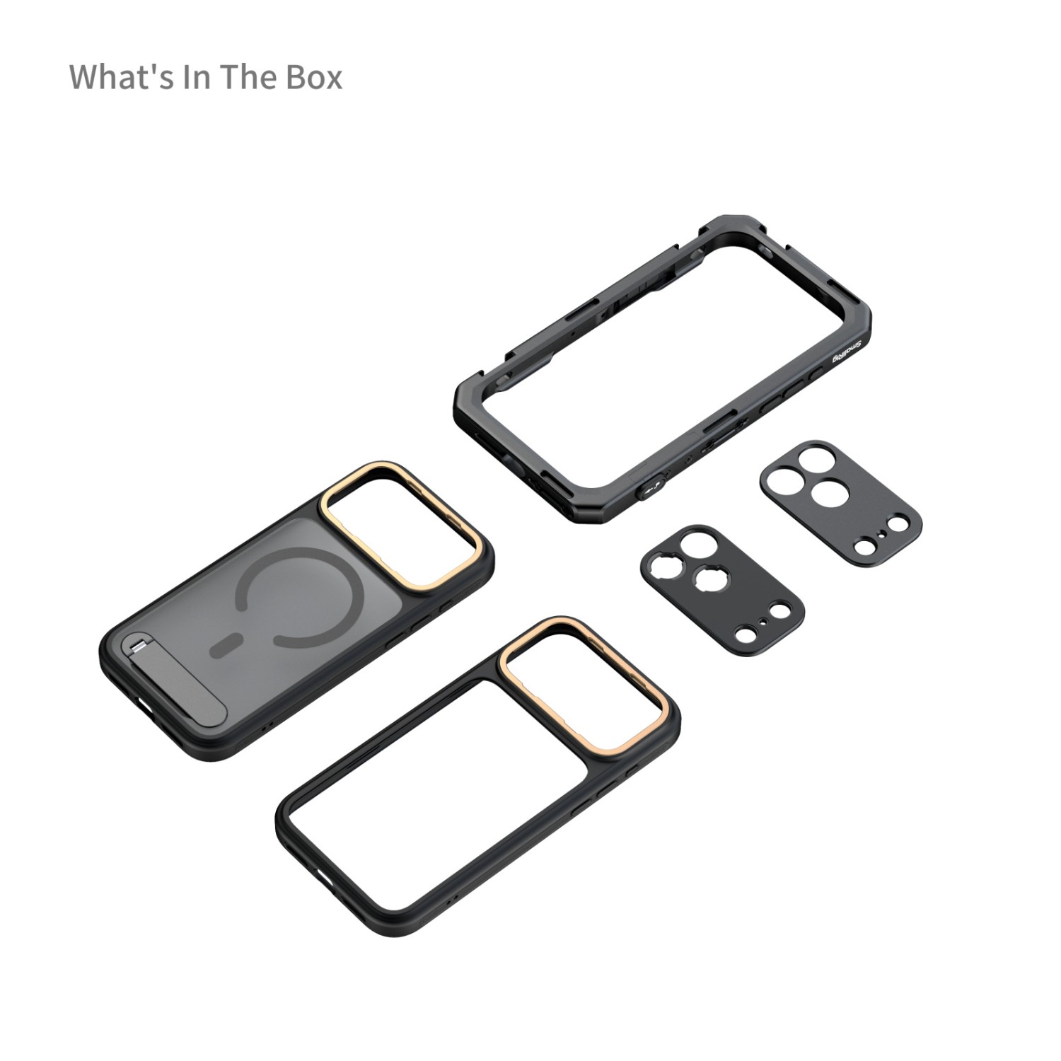 A telefon tokjával együtt is felszerelhető a keretre. A keret több 1/4"-20 csavaros, csavarodásgátló furattal és hideg cipőfoglalattal rendelkezik, amelyeket kiegészítőkkel, például fogantyúkkal, állványokkal, mikrofonokkal és lámpákkal lehet bővíteni. A klasszikus gyorskioldó interfészek hatékony kézi vagy állványos beállításokat tesznek lehetővé.