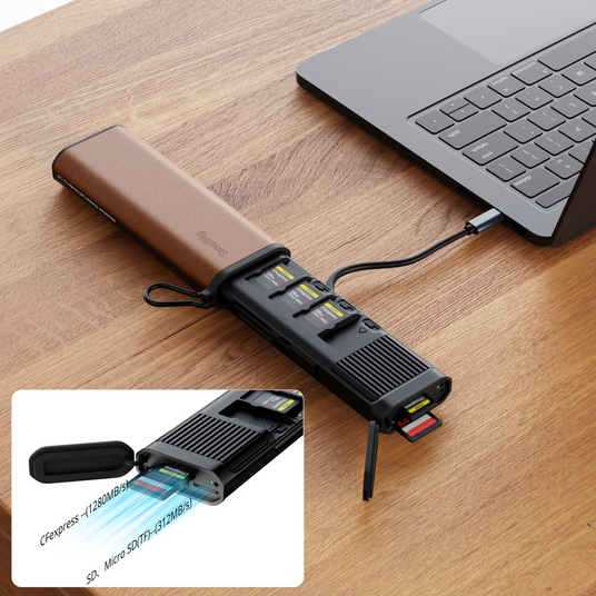 A SmallRig 5361 egy kompakt, all-in-one megoldás professzionális fotósok és videósok számára, akik Sony fényképezőgépeket és CFexpress Type A kártyákat használnak. Ez a multifunkcionális eszköz ötvözi a villámgyors USB 3.2 Gen 2 kártyaolvasót az intelligens beépített tárhellyel és innovatív nyomkövetési funkciókkal. Adatokat CFexpress Type A/B, SD és Micro SD kártyákról egyszerre, akár 10 Gbps (1250 MB/s) sebességgel is átvihet – egy 1 GB-os fájlt mindössze 2 másodperc alatt. Az alumínium hűtőborda és az aktív hűtőrendszer megakadályozza a hőmérséklet-csökkenést hosszabb átvitelek során. A dedikált tápellátási port stabil, megszakításmentes teljesítményt biztosít még intenzív munkamenetek során is. A beépített AirTag-nyílás zökkenőmentesen integrálódik az Apple Find My hálózatába, így bárhol megtalálhatja értékes kártyáit. A belső, rendezett nyílások biztonságosan tárolnak akár 4 db SD, 2 db Micro SD és 4 db CFexpress Type A (vagy 3 db CFexpress Type B) kártyát, és az intelligens állapotjelzőkkel azonnal látható, hogy melyik nyílás tele vagy üres. Megjegyzés: A CFexpress Type A csak a Sony modellekkel kompatibilis; Canon, Nikon és Panasonic esetén válassza a CFexpress Type B verziókat.