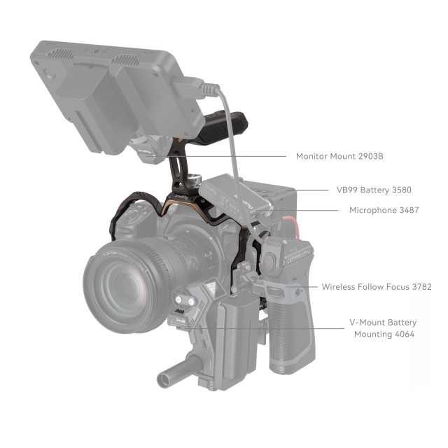 A SmallRig "Night Eagle" Cage Kit for Nikon Z 8 4317 úgy lett kialakítva, hogy az alkotók számára kényelmes, alacsony szögből történő fényképezést biztosítson, védje a fényképezőgépet, és számos tartozékkal bővítse az interfészt. A készlet tartalmaz egy ketrecet, egy felső fogantyút, egy HDMI és USB-C kábelrögzítőt, valamint egy hidegcipő-csatlakozót. A ketrec vadonatúj dizájnnal rendelkezik: aranyszínűvel átszőtt pisztolybarna ívek egészítik ki a Nikon Z 8 klasszikus stílusát. A kábelrögzítő új, nyomható és pattintható kialakítása lehetővé teszi, hogy az interfészfedelet szétszerelés nélkül nyissa ki, így időt takaríthat meg. Emellett megakadályozza a kábel véletlen szétkapcsolódását és stabil átvitelt biztosít.