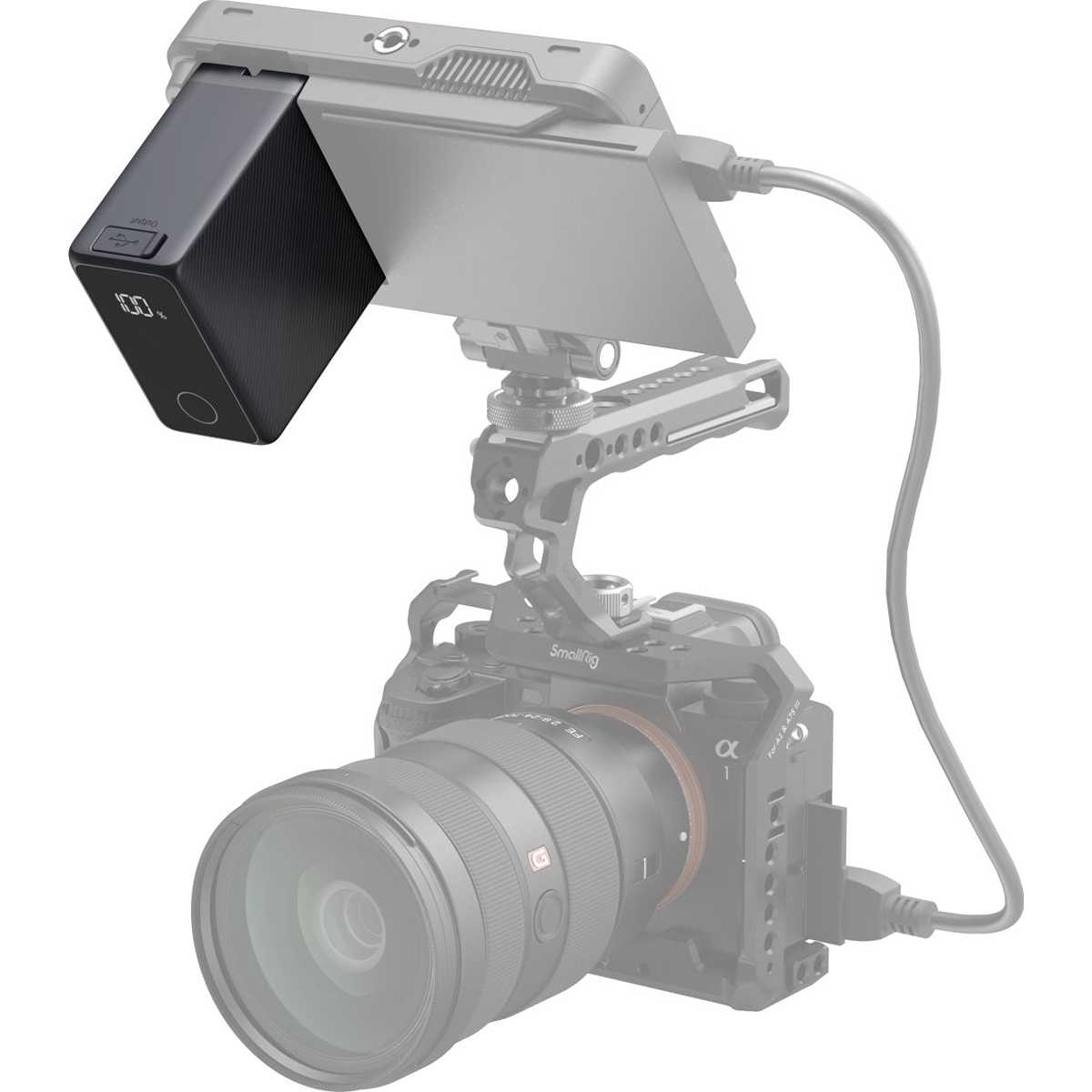 NP-F970 típusú akkumulátor 10500mAh/76,65wh kapacitással a hosszabb használathoz, USB-C és USB-A csatlakoztathatóság a sokoldalú töltéshez, USB-C PD 36W-os gyorstöltési támogatás a gyors, 3,5 órás teljes töltéshez, valamint érintőgombok és kijelző az akkumulátor töltöttségi szintjének egyszerű ellenőrzéséhez.