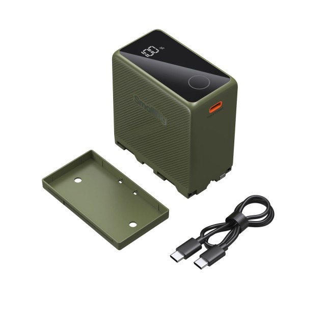 NP-F970 típusú akkumulátor 10500mAh/76,65wh kapacitással a hosszabb használathoz, USB-C és USB-A csatlakoztathatóság a sokoldalú töltéshez, USB-C PD 36W-os gyorstöltési támogatás a gyors, 3,5 órás teljes töltéshez, valamint érintőgombok és kijelző az akkumulátor töltöttségi szintjének egyszerű ellenőrzéséhez. Elérhető 21-től. 05. 2024.