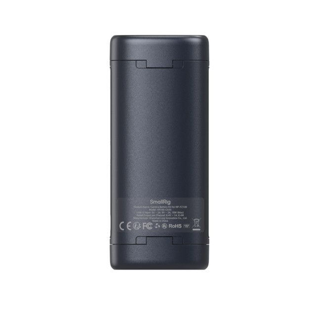 A készülék USB-C porttal rendelkezik a tápellátáshoz, amely lehetővé teszi a csatlakozást power bankokhoz, fali adapterekhez, autós töltőkhöz és egyéb USB-C tápforrásokhoz. Kompatibilitása nemcsak a különböző SmallRig NP-FZ100 akkumulátorokat fedi le, hanem zökkenőmentes működést biztosít az eredeti Sony NP-FZ100 akkumulátorokkal és töltőkkel is. A tokhoz tartozik egy kiváló minőségű, 1 méter hosszú, 60 W-os USB-C–USB-C töltőkábel, amely rugalmas töltési lehetőségeket biztosít.