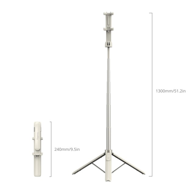 A SmallRig Portable Selfie Stick Tripod ST-25 White 4730 sokoldalú 2 az 1-ben kialakítással rendelkezik, amely egyesíti a szelfibot és az állvány funkciókat, 370 mm és 1300 mm között állítható hosszúsággal. Az összecsukható telefontartó bilincs mind iPhone, mind Android telefonokat befogad, széles körű kompatibilitást biztosítva. Beépített hideg cipővel és a telefonbilincsen található 1/4"-20-as menetes csavarral rendelkezik, így könnyen bővíthető olyan tartozékok csatlakoztatásához, mint a mikrofonok és a világítás, a kibővített felvételi lehetőségek érdekében. Ezenfelül a termékhez újratölthető Bluetooth távirányító is tartozik, amely stabil, akár 10 méteres hatótávolsággal rendelkező vezeték nélküli kapcsolatot garantál, így a felhasználóknak nagyobb mozgásszabadságot biztosít felvételkészítés közben. A telefontartó 360°-os elforgathatóságot biztosít, míg a tartókar 180°-os szögbeállítást tesz lehetővé, hogy a felvételkészítési szögek széles skálájához igazodjon. Emellett az állványalapzat egy kattintásos gombbal rendelkezik a gyors és könnyed beállítás érdekében. Kényelmesen összecsukható kompakt méretűre, mindössze 60,0 x 30,0 x 240,0 mm-re, így tökéletes választás utazáshoz vagy szabadtéri kalandokhoz.