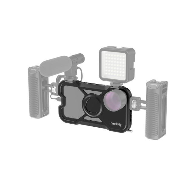 A SmallRig Pro Mobile Cage for iPhone 11 (fekete) CPA2455 úgy lett kialakítva, hogy megvédje iPhone 11 készülékét, és lehetővé tegye további kiegészítők csatlakoztatását mobil fotózáshoz és videózáshoz, élő közvetítéshez, interjúkhoz, vlogoláshoz stb. Egyik oldalán hüvelykujjcsavar található, amely biztosítja a telefon gyors fel- és leszerelését. Két vakusín és több 1/4"-20-as menetes furattal rendelkezik különböző tartozékok, például mikrofon, LED-lámpa, állvány stb. felszereléséhez, és támogatja a vízszintes és függőleges felvételkészítést is. Kompatibilis 17 mm-es menetes objektívvel. Ezek az 1/4"-20-as menetes lyukak a felső és az alsó részén lévő bevágásokkal a SmallRig alumínium oldalsó fogantyú rögzítésére használhatók a HSS2424 okostelefon cage-hez a kézi felvételekhez, vagy a SmallRig bilincs a BSC2390 mobiltelefon kábeléhez a kábel rögzítéséhez felvétel közben. A beépített párnák segítenek elnyelni az ütéseket és megakadályozzák a telefon karcolódását. A csuklóra rögzíthető nyitással is rendelkezik.
