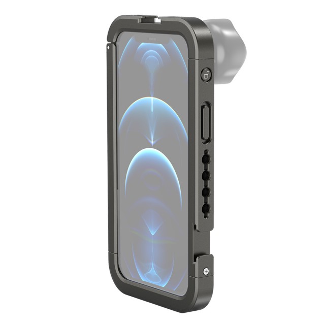 A SmallRig Pro Mobile Cage for iPhone 12 Pro 3075 egy többfunkciós mobiltelefon-cage, amelyet kifejezetten az iPhone 12 Pro készülékhez terveztek, hogy segítsen a mobiltelefonos fényképezés, videózás, vlogolás, élő közvetítés, interjúkészítés és filmkészítés magasabb szintjének elérésében. A cage két vakusínes rögzítővel rendelkezik, amelyek egy mikrofon és egy LED-es lámpa támogatására szolgálnak. Emellett több 1/4-es menetes furattal rendelkezik a felső, alsó, bal és jobb oldalán, hogy különböző kiegészítőket rögzíthessen az Ön igényei szerint, például állványt, oldalsó fogantyút stb. Támogatja a vízszintes és függőleges felvételkészítést is. A beépített alátétek segítenek elnyelni az ütéseket, és megakadályozzák a telefon karcolódását. A hátoldalon található objektívtartó lehetővé teszi, hogy külső objektívet csatlakoztasson a telefonjához egyszerűen. A Quick-Lock kialakítás szorosabb illeszkedést és gyorsabb rögzítést/levételt biztosít a telefonra, valamint biztonságosabb és stabilabb lesz. A telefonod nem fog kipattanni egy véletlen érintés miatt a rögzítés után.