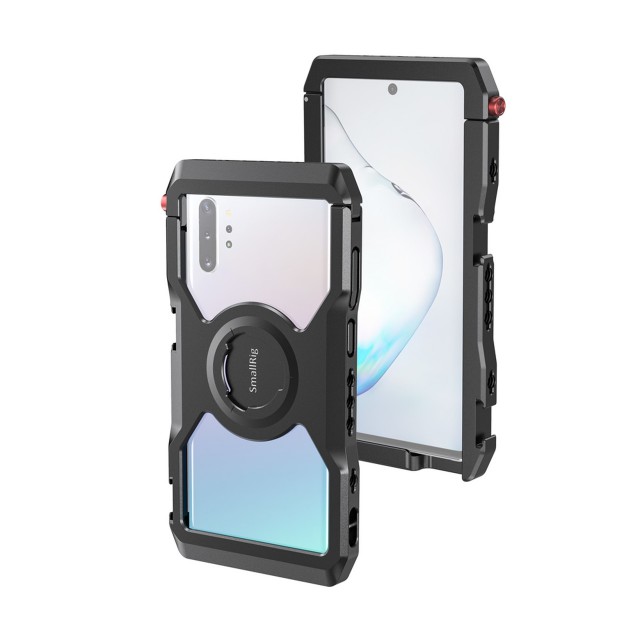 A SmallRig Samsung NOTE10+CAGE Professional Edition CPS2454 úgy lett kialakítva, hogy megvédje a Samsung note10+ készülékét, és hozzáférést biztosítson más tartozékok csatlakoztatásához mobil fotó- és videózáshoz, élő közvetítéshez, interjúkészítéshez, vlogoláshoz stb. Két vakusaruval és több 1/4"-20-as menetes furattal rendelkezik, lehetővé téve különböző tartozékok, például mikrofon, LED-lámpa, állvány stb. rögzítését, és támogatja a vízszintes és függőleges felvételkészítést is. Kompatibilis a SmallRig HSS242-es alumarkolattal, és a SmallRig BSC2390-es mobil kábelbilinccsel, amellyel a kábel rögzítése oldható meg felvétel közben. A beépített gumi alátétek segítenek elnyelni az ütéseket és megakadályozzák a telefon karcolódását. A súlyt csökkentő és a mobiltelefont felmelegítő üreges kialakítás elkerüli az interfész és az antenna területét, így elkerülhető a jelzavarás veszélye. Csuklópánthoz való nyakkendőnyílással is rendelkezik. A gyorsan nyitható és zárható szerkezet gyorsan nyitható és zárható cage.