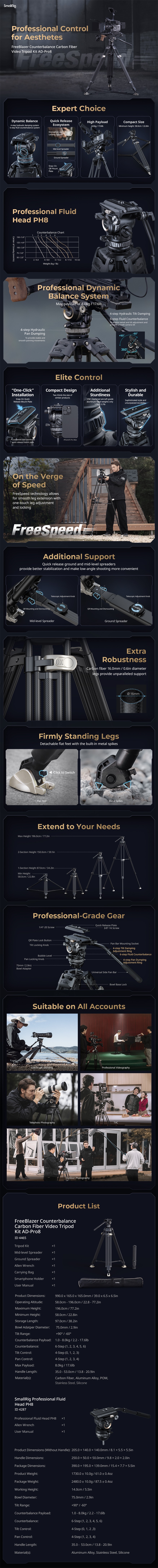 SmallRig FreeBlazer ellensúlyos szénszálas videó állvány készlet AD-Pro8 4465 egy professzionális videó állvány készlet a videofelvételek megkönnyítésére. Az állvány állítható lábakkal rendelkezik, amelyek gyorsan behúzhatók és kihúzhatók a flip lockok segítségével. A működési magasság 58 cm és 196 cm között változik, az összecsukott hossz pedig 97 cm. A fluid…