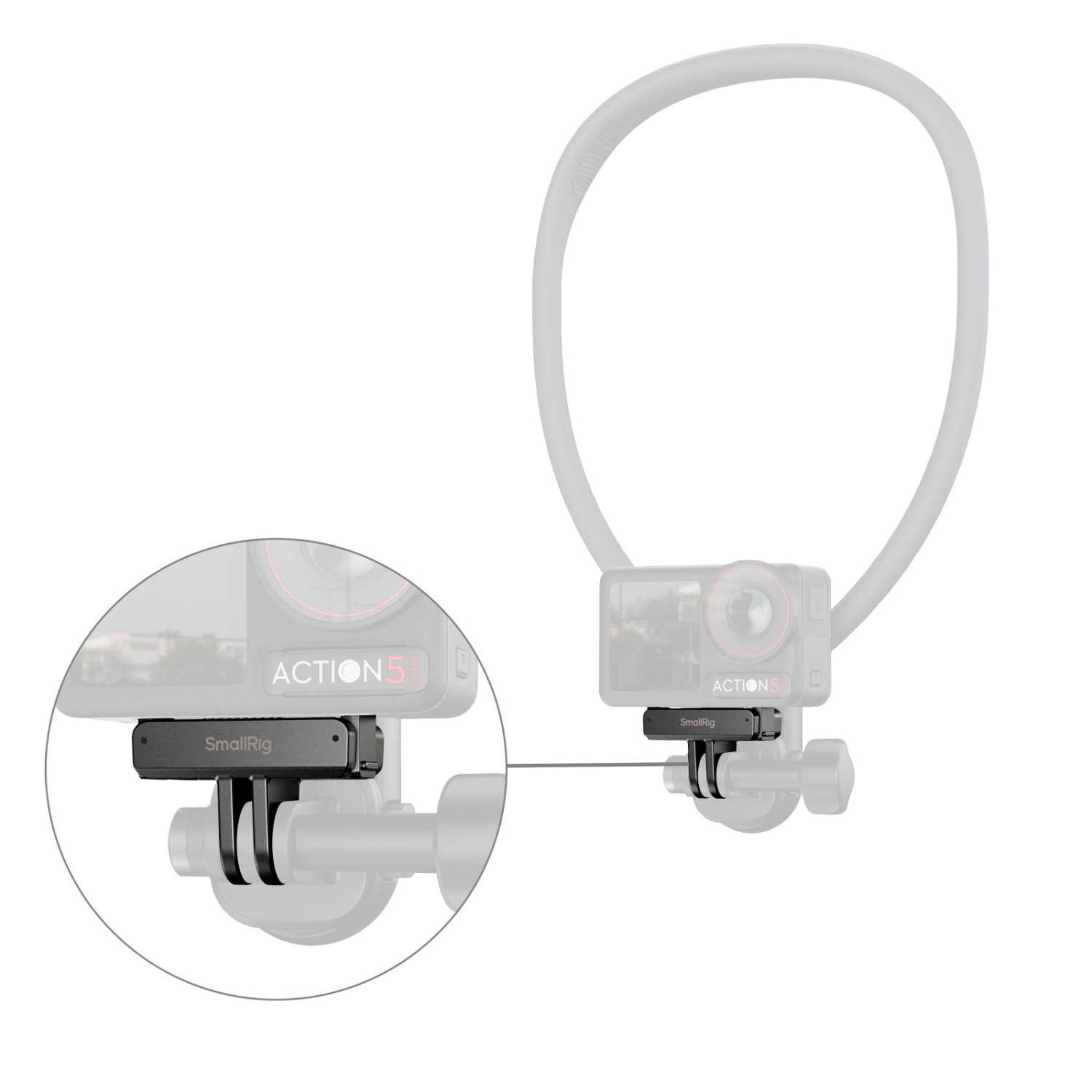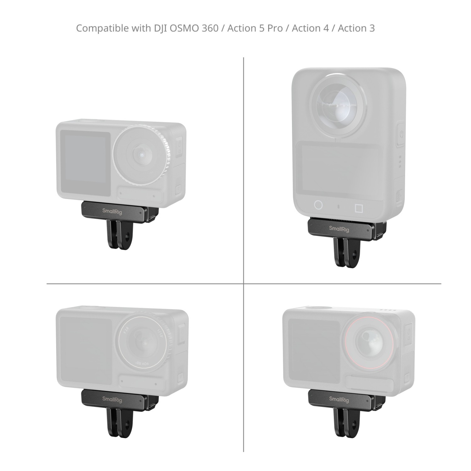 A SmallRig gyorskioldó adapter DJI Osmo 360 / Action 5 Pro / 4 / 3 5813 kültéri felvételekhez készült, ahol gyors kamera felszerelésre és leszerelésre van szükség, különösen akkumulátorcsere vagy áthelyezés esetén. Kifejezetten DJI Osmo 360 / Action 5 Pro / 4 / 3 kamerákhoz tervezve, gyorskioldó rögzítési rendszere lehetővé teszi az azonnali felszerelést és leszerelést, jelentősen javítva a munkafolyamat hatékonyságát.