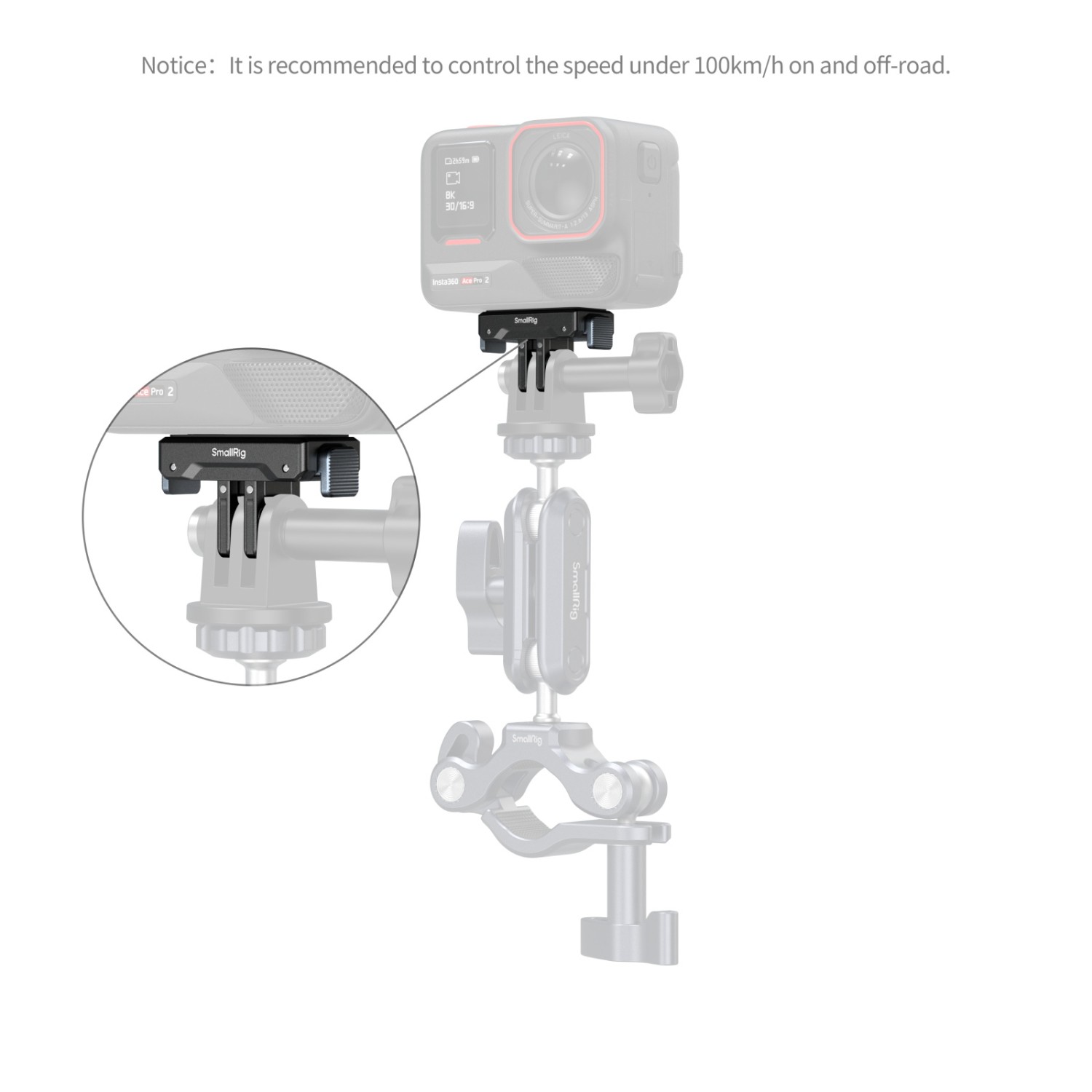 A SmallRig gyorskioldó adapter Insta360 X5 / X4 Air / Ace Pro 2 / Ace Pro / Ace 5814 készülékekhez kültéri felvételekhez lett kifejlesztve, ahol gyors kamera felszerelésre és leszerelésre van szükség, különösen akkumulátorcsere vagy áthelyezés esetén. Kifejezetten az Insta360 X5 / X4 Air / Ace Pro 2 / Ace Pro / Ace kamerákhoz tervezett gyorskioldó rögzítőrendszere lehetővé teszi az azonnali felszerelést és leszerelést, jelentősen javítva a munkafolyamat hatékonyságát.