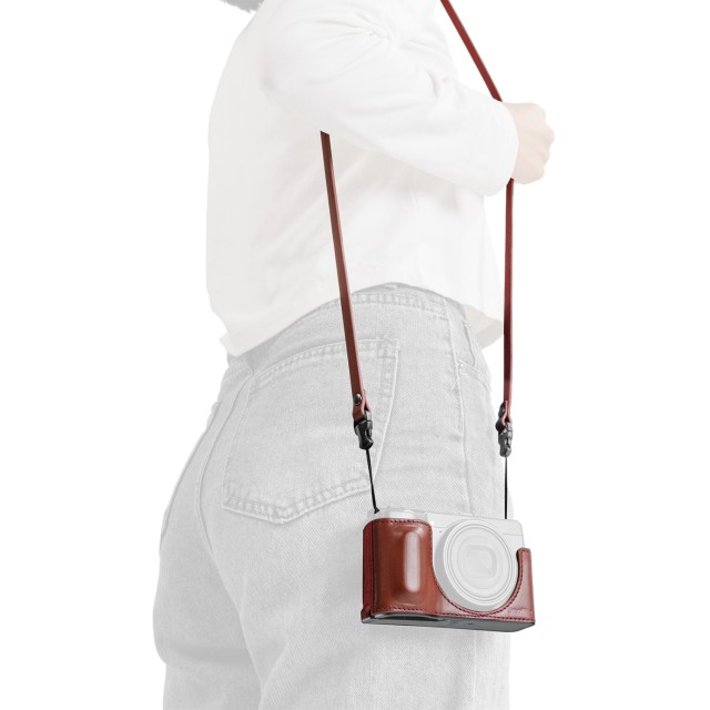 A prémium minőségű valódi bőrből készült heveder egyensúlyt teremt a puhaság, a légáteresztő képesség és a tartósság között, egész napos kényelmet biztosítva és minimalizálva a kéz terhelését. A 1 cm-es (0,4 hüvelyk) szélesség és a 120 cm-es (47,2 hüvelyk) rögzített hosszúság kiegészíti a Ricoh kompakt kialakítását, és a legtöbb felhasználó magasságához és testalkatához illeszkedik.