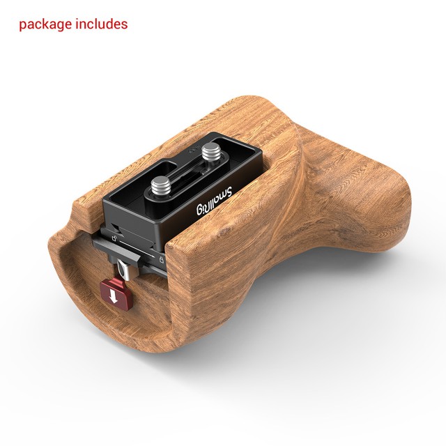 A SmallRig gyorskioldó fa markolat a Z CAM E2 sorozatú kamerákhoz HTS2457 úgy lett kialakítva, hogy kényelmes fogást biztosítson az operatőrök számára a stabilizálás növeléséhez. A fogantyú két részből áll, egy fából készült markolat fecskefarkú rögzítővel és egy adapterlemezből, két rögzíthető 1/4-es csavarral.