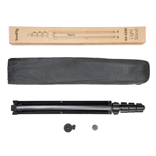 A SmallRig RA-S200 Light Stand 4379 könnyű és hordozható. Az 1/4"-os menetes furat támogatja a zseblámpát, a gyűrűs lámpát, a panelfényt, a mikrofont, az alacsony wattos COB lámpát és más tartozékokat. az 56-200 cm állítható magasság és az 56 cm összecsukott hosszúság növeli a tömörségét. Főleg alumíniumötvözetből készült, ez az elem 20 mm vastag lábakkal rendelkezik, amelyek elég erősek ahhoz, hogy akár 4 kg-ot is elbírjanak. Tartózsákot és fém gömbfejet is tartalmaz, amely alkalmas különböző forgatási forgatókönyvekhez.