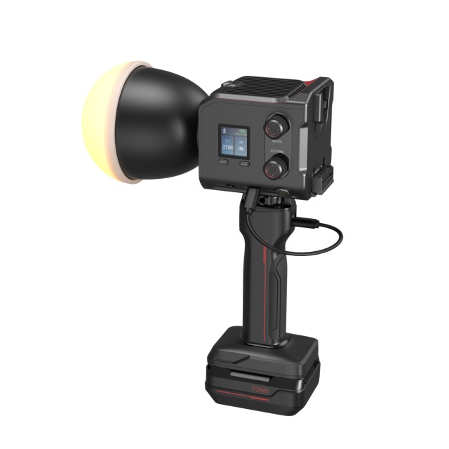 A lámpa sokoldalú áramellátási lehetőségeket kínál, lehetővé téve a vezeték nélküli működést V-mount vagy NP-F970 akkumulátorral. USB-C porton keresztül is tölthető olyan tartozékok segítségével, mint a hálózati fogantyú, a PD-tápegység vagy a töltőkábel, valamint a váltóáramról egyenáramra csatlakoztatható hálózati adapter. Tartalmazza az SH73 markolatfogantyúval tervezett Powerbankot, amely maximális teljesítmény mellett akár 45 perc üzemidőt is képes támogatni, így gyors akkumulátorcserékkel is biztosítja a megszakítás nélküli fényképezést.