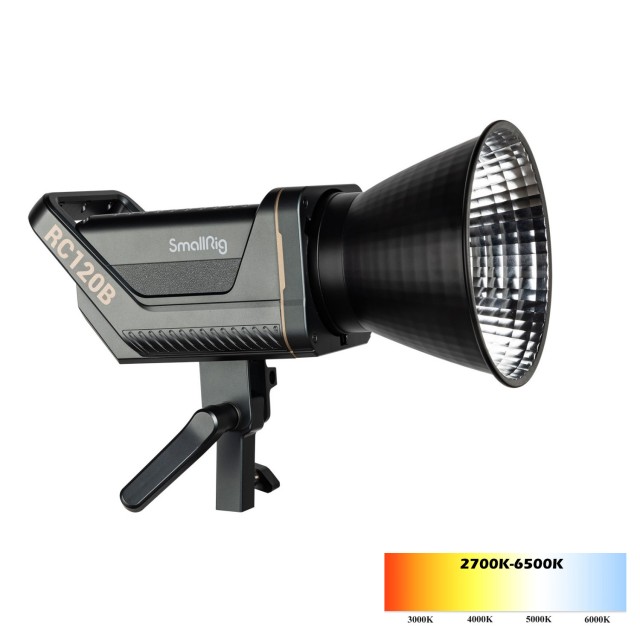 A SmallRig RC120B (3615) a SmallRig professzionális stúdió LED lámpák első generációját képviseli. Fejlett COB (Chip-On-Board) LED technológiát használ a nagy intenzitás (4450 lux), valamint egy nagy hatékonyságú reflektort, amely 1 m távolságban akár 52 800 luxot is elér a fényerő közepén. Magas színpontosságot (CRI 95+, TLCI 96+), Bowens-bajonettet a szabványos tartozékok (softboxok stb.) egyszerű felszereléséhez, valamint kilenc beépített effektet (Paparazzi, Tűzijáték, Villám, Hibás izzó, TV, Lehelet, Villanás, Party, Láng) kínál, amelyek manuálisan és vezeték nélkül is vezérelhetők a SmallGoGo alkalmazáson keresztül, valamint végtelen intenzitás-szabályozást. Az RC120B változat színhőmérséklete 2700-5600K (+/- 200K) között állítható, maximális fényerőssége pedig 4.450 lx vagy 52.800 lx.