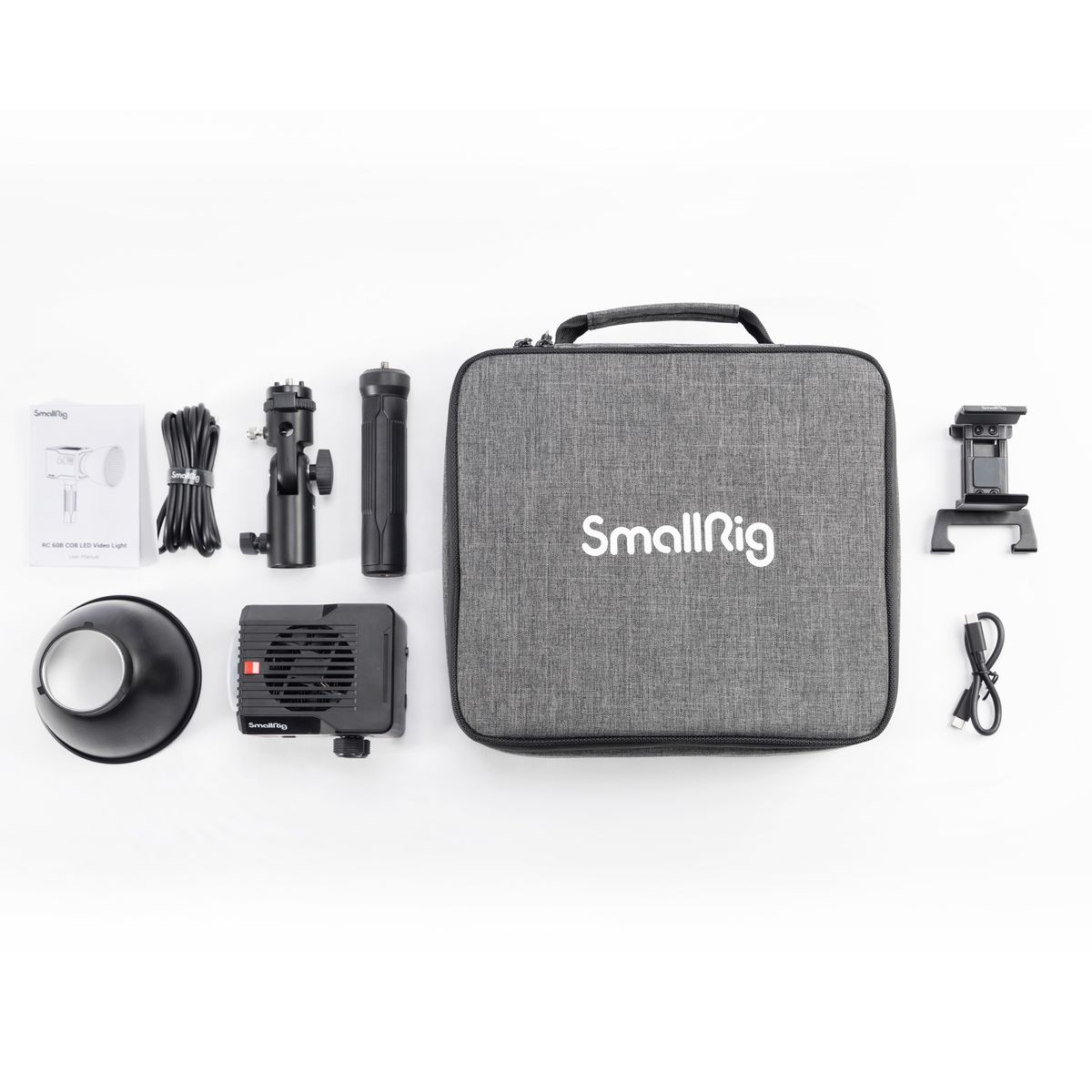 Kompakt 60W-os, kétszínű COB LED-es kompakt lámpák készlete tartozékokkal együtt. Az RC60B 2700-6500K színhőmérséklet-tartományt, CRI 97+ és TLCI 98+, 0-100%-os dimmelést, belső akkumulátort akár 45 percig, a 4376-os készlet tartalmaz egy bilincset power bank vagy külső akkumulátor rögzítéséhez és egy 20 cm-es USB-kábelt is.