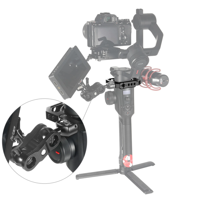 A SmallRig rögzítő bilincs a Moza Air 2 Gimbal BSS2328-hoz úgy tervezték, hogy több rögzítési pontot biztosítson a tartozékok számára. A többfunkciós bilincs egy gomb segítségével rögzíthető, amely lehetővé teszi a gyors felszerelést és levételt. A rögzítő bilincs több 1/4"-20 és két arri 3/8"-os furattal rendelkezik olyan tartozékok számára, mint a Magic Arm 2070, 2115 és a cold shoe 2260 a monitor és a mikrofon számára. Emellett egy nato sínt is tartalmaz a Magic Arm 2116 és a Moza Air 2 Handgrip 2340 számára, hogy a gimbalodat kézre álló, alácsúsztatott pozícióba helyezhesd. A bilincs belsejében gumibetétek találhatók, hogy megakadályozzák a gimbal karcolását.