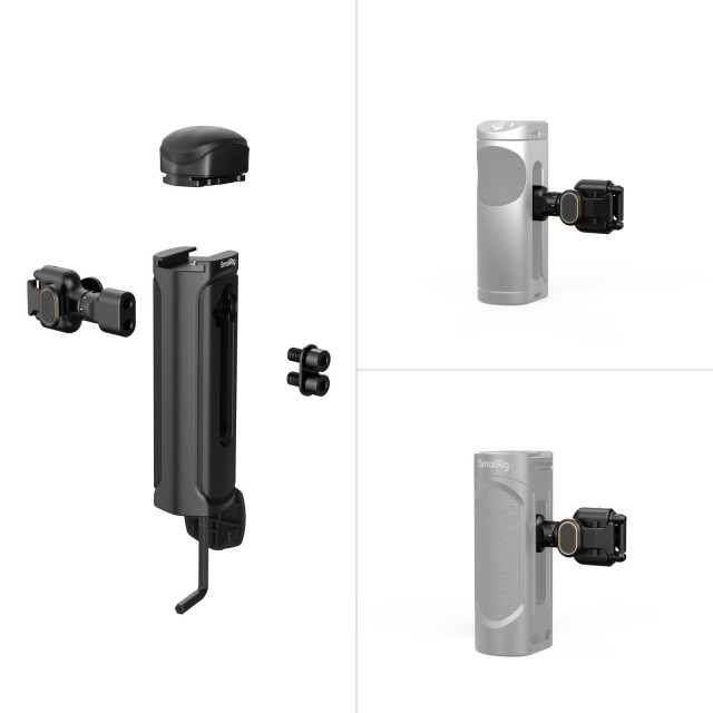 A SmallRig Rotatable Quick Release Adapter for Side Handle 4610 egy kifejezetten a SmallRig telefonok gyorskioldó ökoszisztémájához tervezett csatlakoztathatósági kiegészítő, amely a hagyományos telefon oldalsó fogantyúját forgatható funkcióval egészíti ki. Az oldalsó fogantyú elforgatásával gyorsan beállíthatja a markolat kényelmét, jelentősen javítva a fényképezés hatékonyságát és a különböző fényképezési pozíciók élményét. Az elforgatható gyorskioldó adapterrel felszerelt fogantyú lehetővé teszi a hatékony váltást az oldalsó és a felső fogantyú között. Lépés nélkül elforgatható, és bármilyen szögben szilárdan megáll, megbízható és tartós csillapítással, és hosszú távú használat során sem lazul meg. Számos SmallRig markolattal használható, beleértve a 4402, 4403, 3838, 3894 és 2772 markolatokat, lehetővé téve a felhasználók számára, hogy a markolatot könnyen forgatható markolattá fejlesszék.