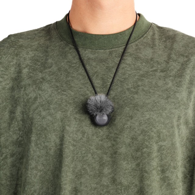 A számos tartozékkal rendelkező mikrofon sokoldalú viselési lehetőségeket kínál, például nyakörvre mágneses rögzítéssel, nyakba akasztható, kézben tartott és csíptethető stílusban. Ezenkívül támogatja a szilikon tartóra rögzíthető szélvédő használatát, amely szélszigetelési és zajcsökkentési előnyöket biztosít.
