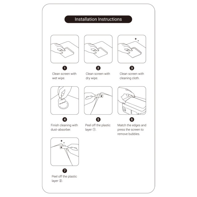 Ultravékony kialakítása és kiváló érintésérzékenysége biztosítja a csupasz képernyőhöz hasonló precíz vezérlést. A csomag tartalmaz egy teljes telepítőkészletet – alkoholos törlőkendők, tisztító kendők és porelnyelő matricák – a problémamentes, pormentes felhelyezéshez.