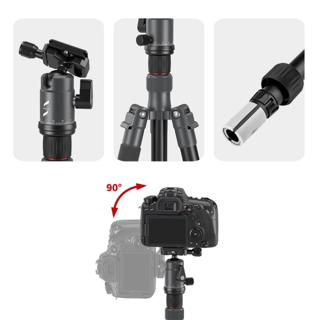 A SmallRig 3257-es Selection Hordozható alumínium kameraállvány PT10 alumínium ötvözetből készült, 8 kg teherbírással. Az állvány támogatja a DSLR, tükör nélküli fényképezőgépeket stb. Önzáró, ötszekciós lábai 1445 mm-es maximális magasságot és kiváló stabilitást tesznek lehetővé. Fordított összecsukhatóságának köszönhető, hogy mindössze 325 mm-es méretre csukható, így könnyen hordozható. Kétrészes, megfordítható középső oszlopának köszönhetően alacsony szögű és makró felvételeket is készíthet. A levehető monopod nagy rugalmasságot biztosít. Az állványhoz tartozik egy gömbfej, amely támogatja a panorámafelvételeket, valamint egy Arca-Swiss típusú gyorscsretalp a kézi és állványos felvételek közötti gyors váltáshoz.