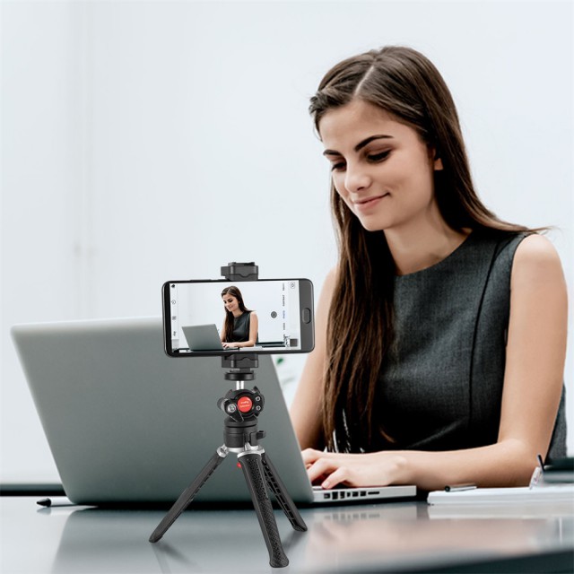 A SmallRig Selection asztali állvány DT-02 3256 egy könnyű, kompakt miniállvány, amely akár 2 kg biztonságos terhelhetőséggel rendelkezik. Ideális tükör nélküli fényképezőgépekhez, kompakt fényképezőgépekhez, okostelefonokhoz, akciókamerákhoz stb. Az alján található gomb megnyomásával könnyen válthat a különböző állványmagasságok között. A gömbfej lehetővé teszi a különböző szögekből történő fényképezést, és rendelkezik egy szabványos 1/4"-20-as rögzítőfurattal a gém vagy más tartozékok rögzítéséhez. Gyorskioldós rögzítéssel is rendelkezik 56 mm és 86 mm közötti okostelefonok számára. A mellékelt bluetooth vezérlés még egyszerűbb okostelefonos vezérlést biztosít.
