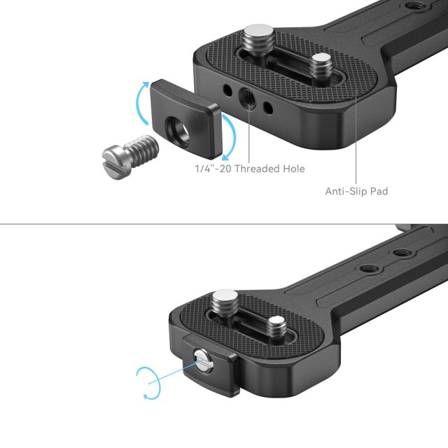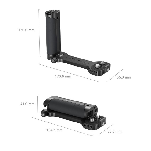 A SmallRig 2786-os oldalsó gimbalmarkolatot úgy tervezték, hogy csökkentse a kar leterheltségét és biztosítsa a tartozékok rögzítését a stabilizátorokkal való felvételek során. Ez az ergonomikus markolat lehetővé teszi, hogy két kézzel tartsa a gimbalt, így csökkentve az egyik kézre nehezedő súlyterhelést. A gimbal aljához 1/4" -20 és 3/8"-16-os rögzítőcsavarokkal csatlakozik.