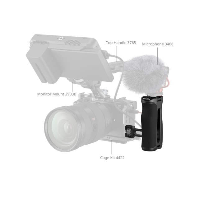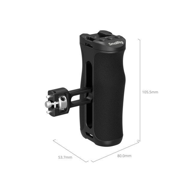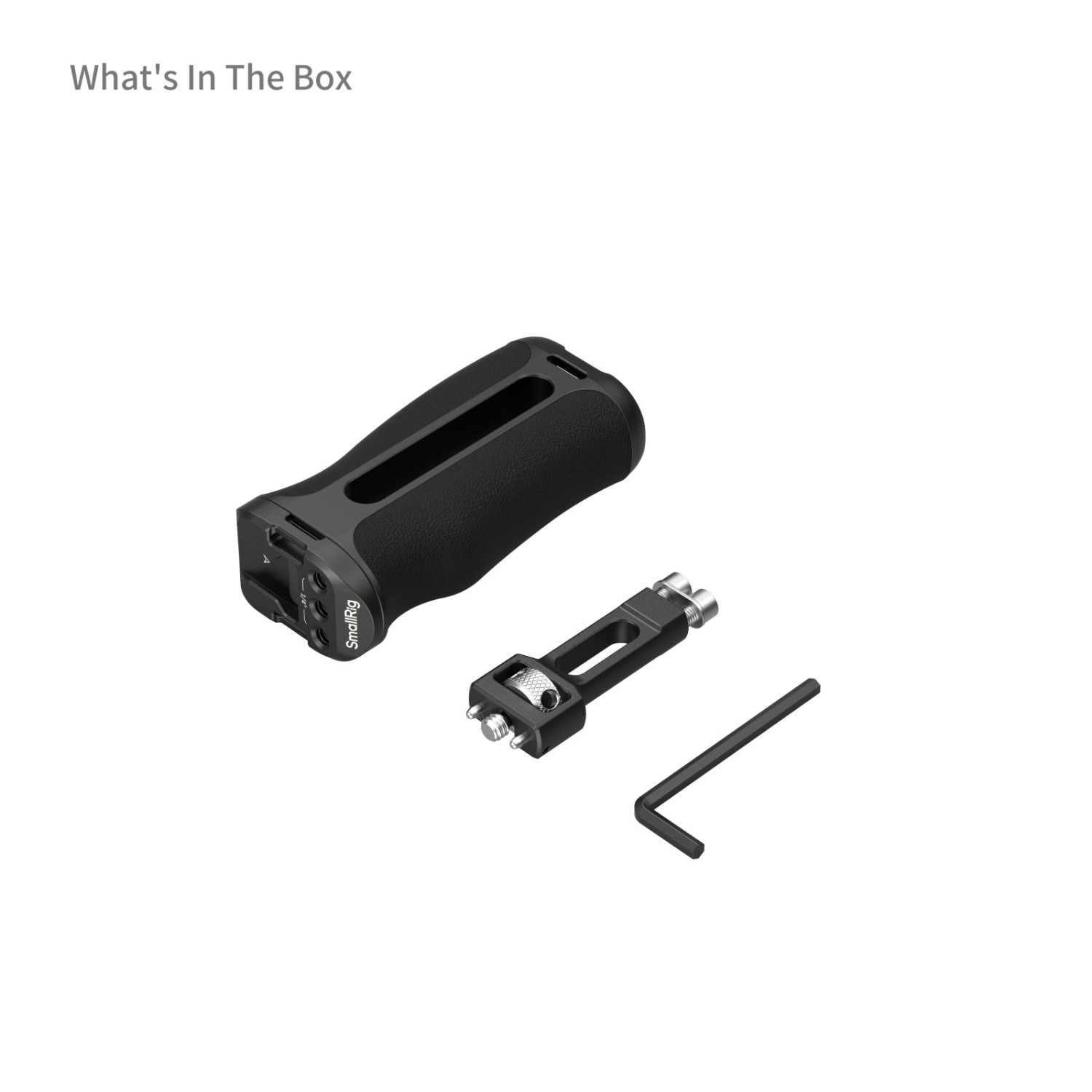 A SmallRig 5950 oldalsó fogantyú 1/4''-20 rögzítőcsavarral a dinamikus kézi felvételek javítására lett tervezve, sima mozgást és zökkenőmentes vezérlést biztosít, miközben sokoldalú bővítési lehetőségeket kínál. A maximális stabilitás érdekében 1/4"-20 rögzítőcsavarral biztonságosan rögzíthető a kamera keretének oldalához.