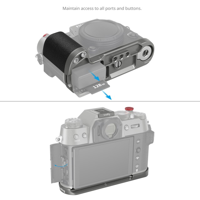 A SmallRig szilikon L-alakú markolat FUJIFILM X-T50 fényképezőgéphez (szénezüst) 4712 a fényképezőgép markolatának javítására szolgál. Az L-alakú markolat a fényképezőgéphez egy 1/4"-20-as csavarral rögzíthető az alján, a beépített szilikonbetétek pedig megakadályozzák a karcolásokat. A markolat textúrája és színe tökéletesen illeszkedik a FUJIFILM X-T50 fényképezőgéphez. A beépített Arca-Swiss gyorskioldó alaplemez lehetővé teszi az egyszerű és gyors Arca-típusú állvány összeszerelését és szétszerelését. Négy 1/4"-20-as menetes furat az alján a Manfrotto-típusú lemezek és állványok rögzítéséhez. Pánthely a csuklópánthoz (azonosító: 3848). Beépített lapos kulcs az alján a tartozékok egyszerű összeszereléséhez és szétszereléséhez. A markolat a FUJIFILM iránti tiszteletünk jeléül a "FUJIFILM" hanghullámmal és az alapítás évével lenyomott exkluzív forró cipőfedéllel érkezik. A puha és kényelmes ujjérintés érdekében egy zárkioldó gombot is tartalmaz.