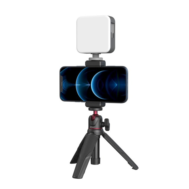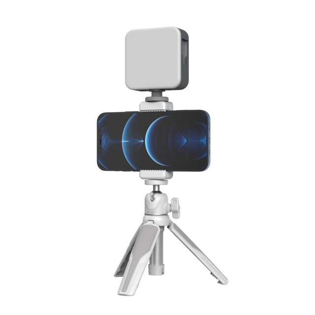 A 3509-es simorr Vigor VK-30 Vlog Kit egy vlog állványból, egy szabványos telefoncsipeszből és egy Vibe P96 LED lámpából áll, így kompakt és hordozható. Az állvány egy 1/4-es csavarral csatlakozik a telefondokkolóhoz, a telefoncsipesz pedig a tetején lévő szabványos paszzív vakusínen keresztül csatlakozik a lámpához, a lámpa pedig pedig 3 szabványos vakusínnel rendelkezik a további bővítési lehetőségek érdekében. Az állvány 16 cm-ere összehajtható, maximális terhelhetősége 1,5 kg. A P96 LED-lámpa 2700k-6500k színhőmérséklettartományban állítható, és 13,5 órás maximális üzemidejű.