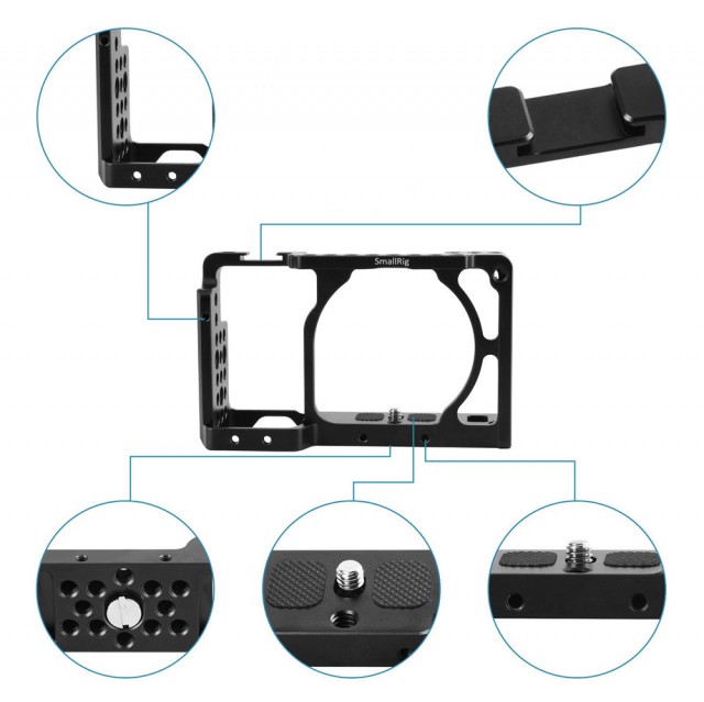 A SmallRig Sony A6000/A6300/A6500 ILCE-6000/ILCE-6300/ILCE-A6500/Nex-7 Cage 1661 egy alumínium cage, amely védi a fényképezőgépet és számos kiegészítő rögzítési lehetőségeket kínál.