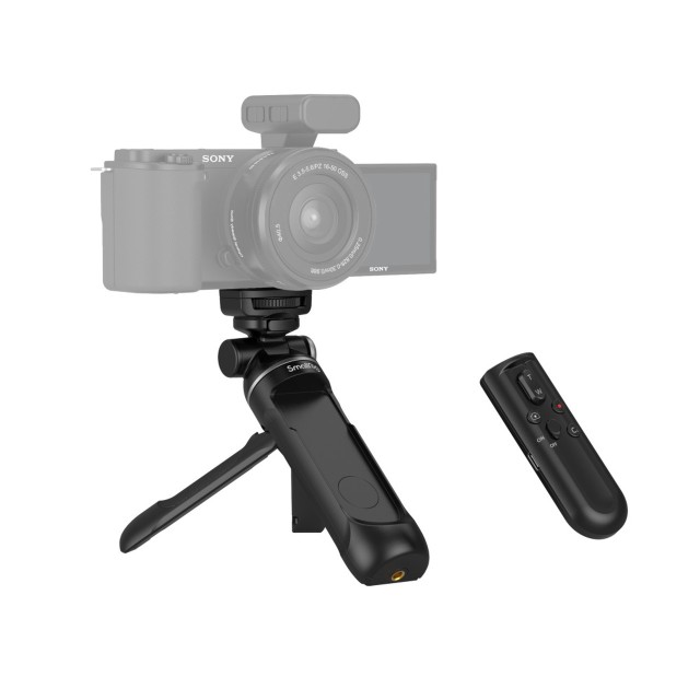 A SmallRig 3326-os SR-RG1 Bluetooth-os vezeték nélküli markolat egy sokoldalú fotómarkolat, szelfibot, valamint asztali állvány meghatározott Sony és Canon kamerákhoz. A markolatot úgy tervezték, hogy javítsa a felvételek stabilitását, ideális vlogoláshoz, élő közvetítéshez, egyszerű mindennapi használathoz és egyéb forgatókönyvekhez. Jellemzők levehető és tölthető vezeték nélküli távirányítóval elérheti a kamera fotó, videó, zoom, fókusz és egyéb funkciók, ami megkönnyíti a vlogolást. A markolat két pozícióban 15 cm-ig kihúzható, az integrált fej 90°-kal felfelé, 90°-kal lefelé dönthető és 360°-kal elforgatható a megfelelő pozicionálás érdekében. Hordozható méret és könnyű súly a könnyű hordozáshoz. A markolat alján 1/4"-20-as menetes furat található az állványhoz, hogy szélesebb kilátást biztosítson, és segítsen állni, amikor szelfibotként használja. A nagy szilárdságú nejlon és üvegszál teszi robosztussá és tartóssá, akár 1,5 kg teherbírással (kihúzott állapotban 0,5 kg).
