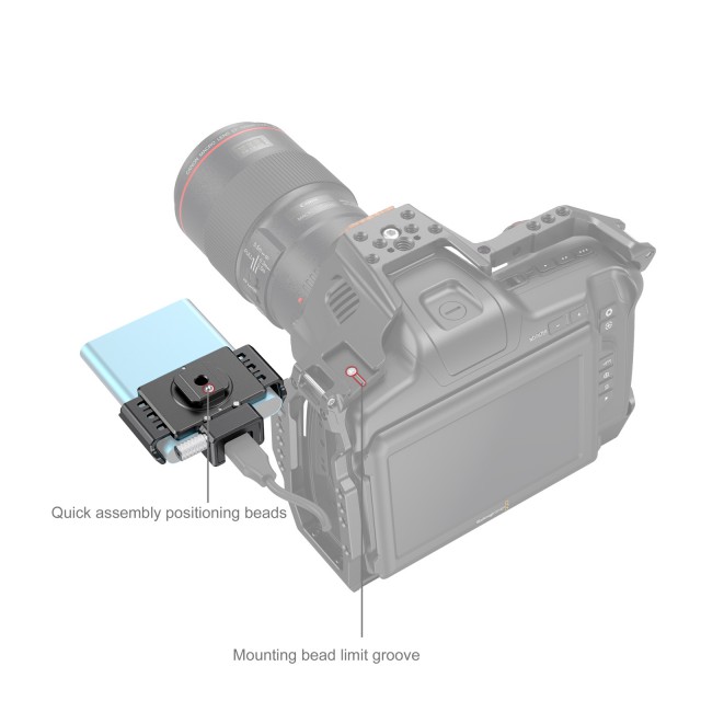 Szerelőkit T5/T7 SSD-khez, dedikáltan a SmallRig 3270 kameracage a BMPCC 6K Pro-hoz. A cage bal felső oldalán lévő vaku aljzatra vagy az 1/4"-20-as menetre szerelhető (csavar a tartozék). A gumipárnák megakadályozzák a lemez megkarcolását, és az USB-kábelhez egy bilincs is tartozik, amely kézzel könnyen meghúzható/lazítható. Tömeg 41 g ±5 g.