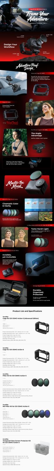 A SmallRig kompatibilis szűrőket (ID 5895, 5896) is kínál a DJI Osmo Action 6 kamerához.
