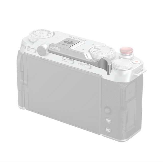 A beszerelés gyerekjáték: egyszerűen csúsztassa a hüvelykujjas markolatot a fényképezőgép forró cipőjébe a biztonságos illeszkedés érdekében. A markolat emellett homorú zárkioldógombot is tartalmaz, amely puha és kényelmes érintést biztosít, fokozva a fényképezés élményét és a fényképezőgép feletti irányítást.