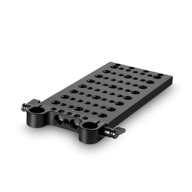 A SmallRig Cheese Plate 1093 kettős 15 mm-es rúdrögzítővel nagyszámú 1/4"-20 és 3/8"-16-os furattal van ellátva, amelyek lehetővé teszik csuklókarok, rudak, akkumulátorok, átalakítók és különféle egyéb kamerakiegészítők rögzítését a tartórendszerhez.