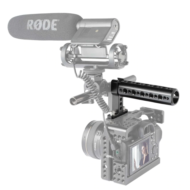 A SmallRig Top Handle (1/4"-20 csavarok) 1638C úgy lett kialakítva, hogy megkönnyítse az alacsony szögben történő felvételeket és csökkentse a karra nehezedő terheket. A jól formázott fogantyú kényelmes érzés, és változatos tartozékrögzítőkkel rendelkezik. Ezek közé tartozik egy hidegcipő rögzítés az elején a mikrofon, a LED lámpa, a Monitor Mount 2905 számára; egy ARRI 3/8"-16-os helymeghatározó furat a hátsó végén a Monitor Mount 2903 számára; 1/4"-20 és 3/8''-16-os menetes furatok a tetején és mindkét oldalán a Magic Arm 2070 rögzítéséhez a monitor rögzítéséhez. Ez a fogantyú a 2924-es távirányítóval is működik a felvételhez néhány bizonyos kamera esetében. Általában menetes furatokon keresztül szerelhető fel.