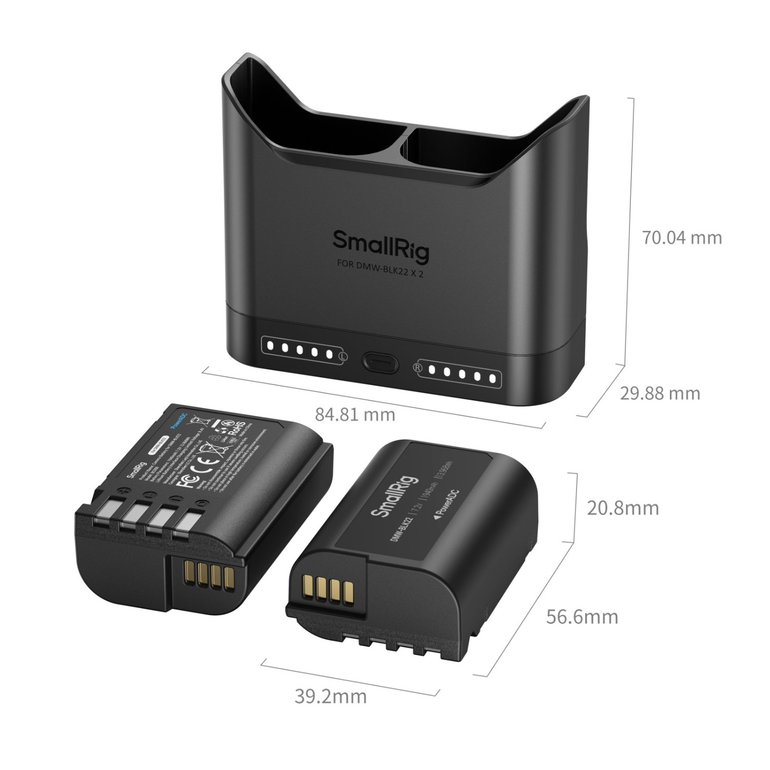 A SmallRig Turbo töltőkészlet DMW-BLK22 kamerás akkumulátorokhoz 5487 két nagy teljesítményű akkumulátort és egy kétcsatornás gyors töltőt tartalmaz. A teljes dekódoló chipnek köszönhetően ez a készlet teljes kompatibilitást biztosít a Panasonic DMW-BLK22 akkumulátorokkal, így nem jelennek meg felugró figyelmeztetések, miközben támogatja a kamerában lévő energia kijelzőt és az eredeti töltő használatát.