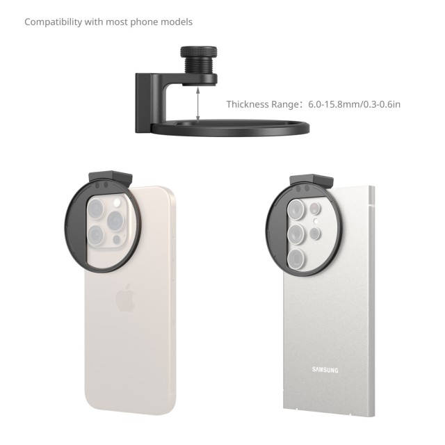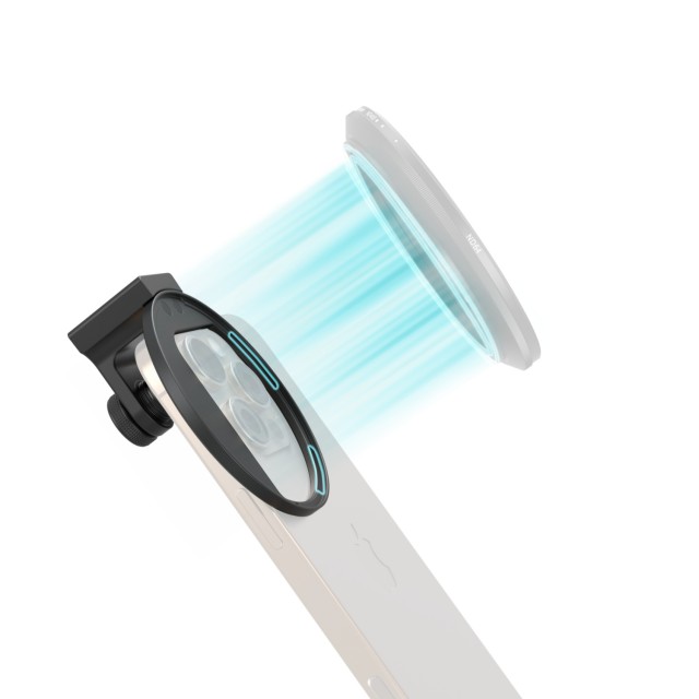 A mágneses rögzítéssel ellátott adapter lehetővé teszi a szűrők zökkenőmentes felszerelését és cseréjét. A nagyobb stabilitás érdekében egy reteszelőgomb biztonságosan rögzíti a szűrőt a telefonhoz, míg a kétoldali karcolásgátló párnázás védi a telefont. A bilincs nyitási tartománya 6-15,8 mm / 0,24-0,62in, így biztosítva a kompatibilitást a különböző telefonmodellekkel, bár ajánlott telefon tok nélkül használni. Ezen kívül egy menetes adapter is tartozik hozzá, amely univerzális kompatibilitást biztosít a 67 mm-es menetes szűrőkkel.