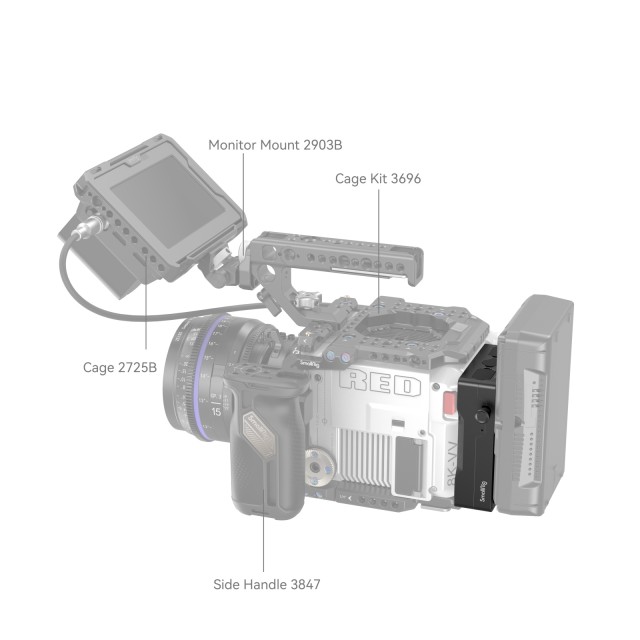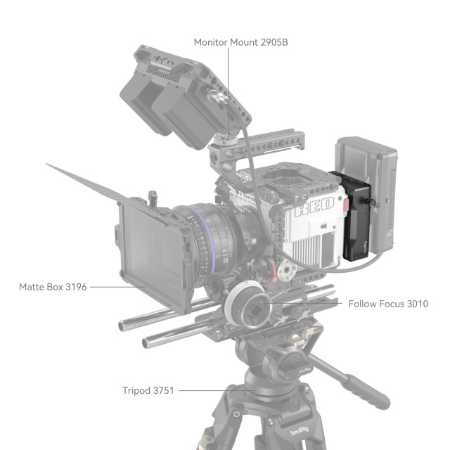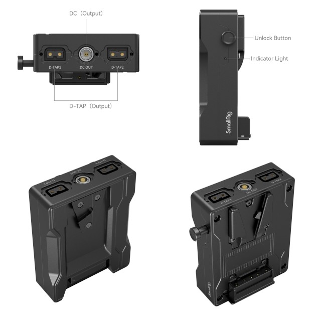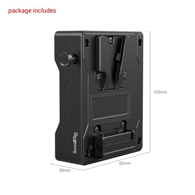 A SmallRig V-Mount akkumulátorlemez adapter a RED V-RAPTOR 3898-hoz egy nagyméretű V-Mount akkumulátor csatlakoztatására szolgál a RED V-RAPTOR-hoz, és szükség esetén más eszközök táplálására. Egyszerűen pattintsa közvetlenül a RED V-RAPTOR hátlapjára a V-Mount akkumulátor csatlakoztatása előtt; akkor válik működőképessé, amikor a jelzőfény világít. A bal oldali feloldó gomb megnyomásával gyorsan eltávolíthatja az akkumulátort. A lemez két D-csapot és egy egyenáramú kimeneti portot is tartalmaz a monitorok, képátviteli rendszerek stb. tápellátásához.