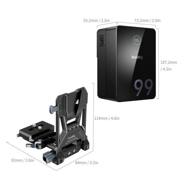 A SmallRig VB99 Pro mini V-mount akkumulátor (készlet) 5046 tartalmazza a VB99 Pro mini V-mount akkumulátort az összecsukható V-mount akkumulátortartó lemezzel, amely egy kompakt és könnyű integrált V-mount akkumulátoros áramellátási megoldást biztosít. Ez a készlet kiemelkedik kivételes kompatibilitásával, zökkenőmentesen alkalmazkodik a különböző eszközökhöz és forgatási környezetekhez. Kis mérete és hordozható kialakítása lehetővé teszi a kényelmes hordozást és tárolást, így bárhol és bármikor áramellátási megoldást biztosít eszközei számára.