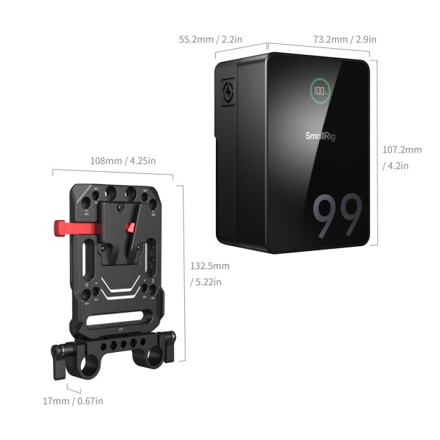 A SmallRig VB99 Pro mini V-mount akkumulátor (készlet) 5047 tartalmazza a VB99 Pro mini V-mount akkumulátort az összecsukható V-mount akkumulátortartó lemezzel, amely egy kompakt és könnyű integrált V-mount akkumulátoros áramellátási megoldást biztosít. Ez a készlet kiemelkedik kivételes kompatibilitásával, zökkenőmentesen alkalmazkodik a különböző eszközökhöz és forgatási környezetekhez. Kis mérete és hordozható kialakítása lehetővé teszi a kényelmes hordozást és tárolást, így bárhol és bármikor áramellátási megoldást biztosít eszközei számára.