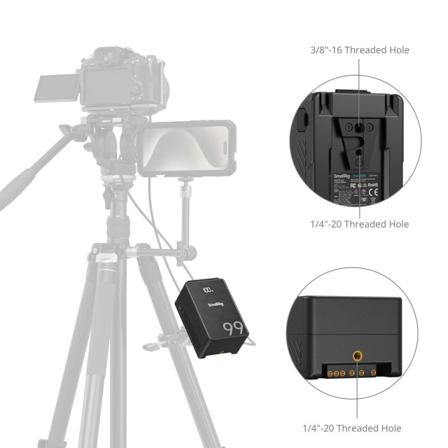 A SmallRig VB99 SE mini V-mount 4608 akkumulátor egy kompakt V-mount akkumulátor, amely rendkívül integrált kialakítással rendelkezik, amely hatékonyan csökkenti az akkumulátor teljes méretét, így könnyűvé és hordozhatóvá teszi azt. LG A-osztályú 18650-es, nagy sebességű cellákkal rendelkezik, amelyek pontos kapacitást, ciklusteljesítményt és kivételes stabilitást biztosítanak. Úgy tervezték, hogy megfeleljen az olyan nemzetközi szabványoknak, mint az MSDS / UN38.3 / IEC 62133 / UL2054 / UL 62368, és olyan tanúsítványokkal rendelkezik, mint az FCC / CE / RoHS / ISED / RCM / PSE / KC, biztosítva a felhasználók számára a biztonságos és megbízható működést. Az akkumulátor egy BP, egy D-Tap, egy 8V-OUT DC, egy 12V-OUT DC, egy USB-C és egy USB-A porttal van felszerelve, amelyek számos interfészt kínálnak több eszköz egyidejű táplálásához. Ide tartoznak a fényképezőgépek, tükör nélküli fényképezőgépek, monitorok, adók, videólámpák, okostelefonok, táblagépek, laptopok és még sok más, integrált és hatékony áramellátást biztosítva minden igényt kielégítően.
