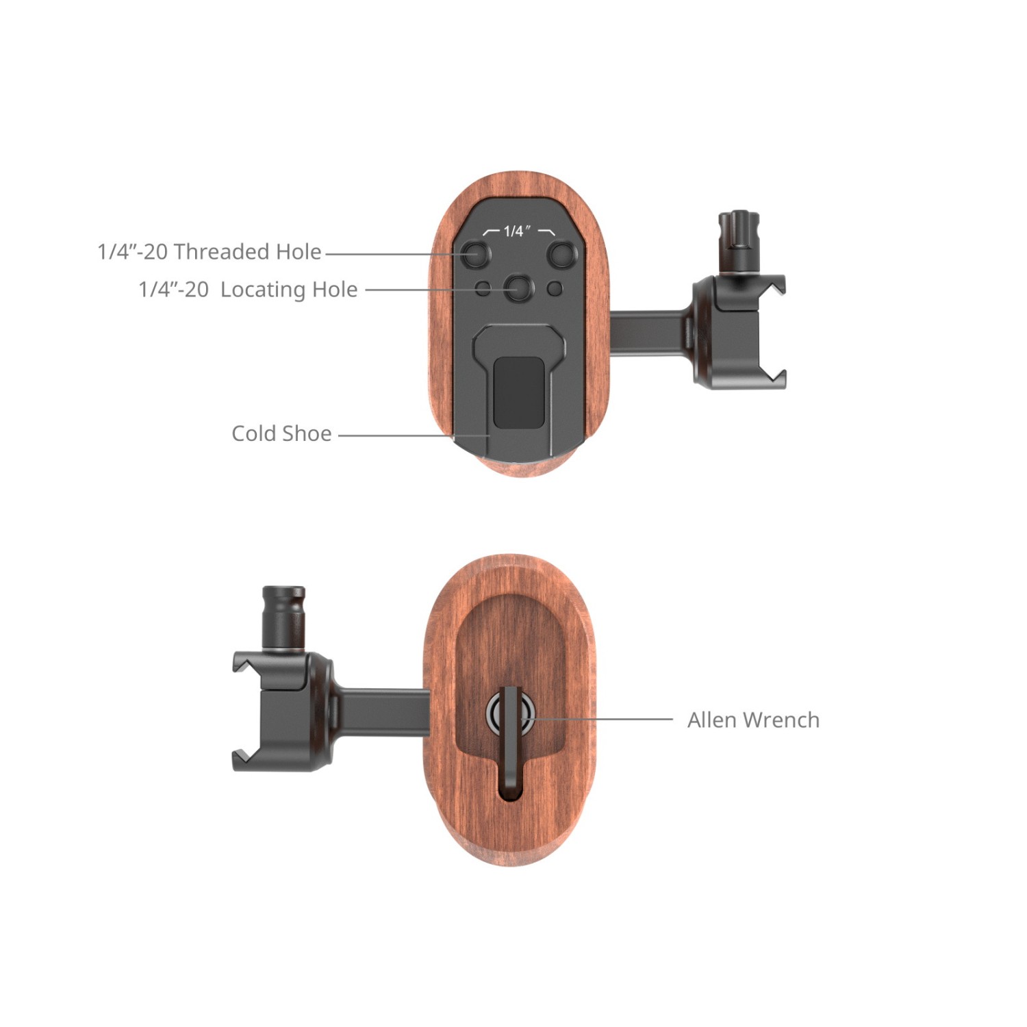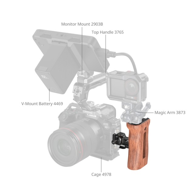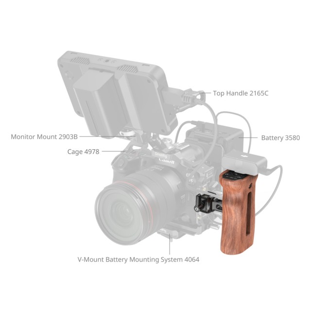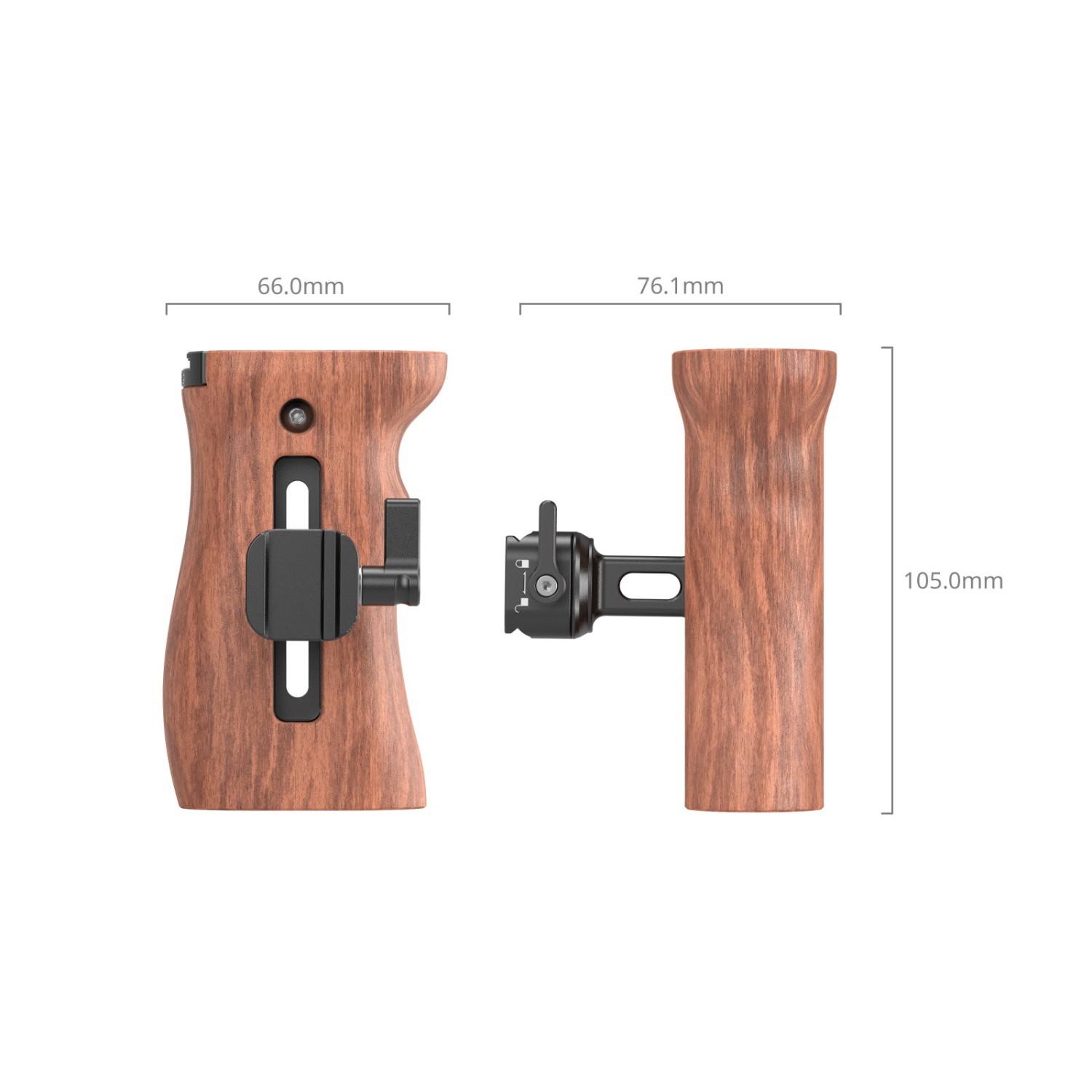 A SmallRig 2187C fa oldalsó fogantyú NATO-bilinccsel kényelmes kézi felvételek készítésére lett kialakítva. NATO-bilincs és imbuszkulcs segítségével biztonságosan rögzíthető a NATO-sínnel ellátott vázakra. A fogantyú imbuszkulccsal könnyen szétszerelhető, így gyorsan átállítható bal- vagy jobb oldali használatra, emellett magasságában is állítható az optimális irányítás érdekében. A fogantyú tetején egy hidegcipős rögzítő található mikrofonok vagy vakuk rögzítéséhez, valamint két 1/4"-20 menetes furat és egy 1/4"-20 rögzítőfurat mágikus karok vagy monitor tartók rögzítéséhez monitoros felállásokhoz.